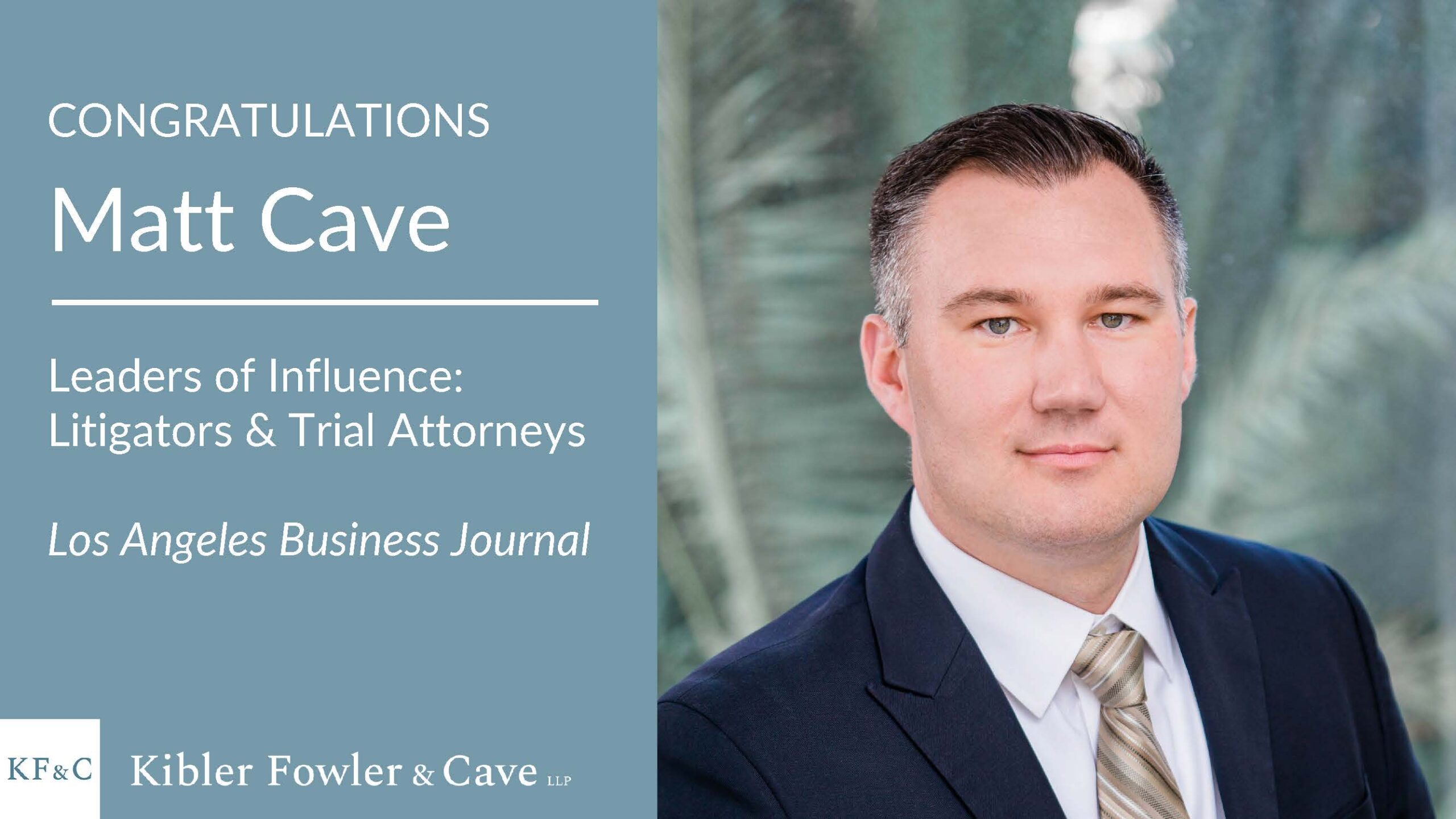 Kibler Fowler & Cave LLP is proud to announce that Founding Partner Matt Cave has been named to the Los Angeles Business Journal’s 2025 list of “Leaders of Influence: Litigators & Trial Attorneys.” This prestigious annual feature honors the region’s most accomplished and respected courtroom advocates—those described as “the trusted advisors you want in your corner in court.” Honorees are selected for their significant impact on both the legal profession and the Los Angeles community.