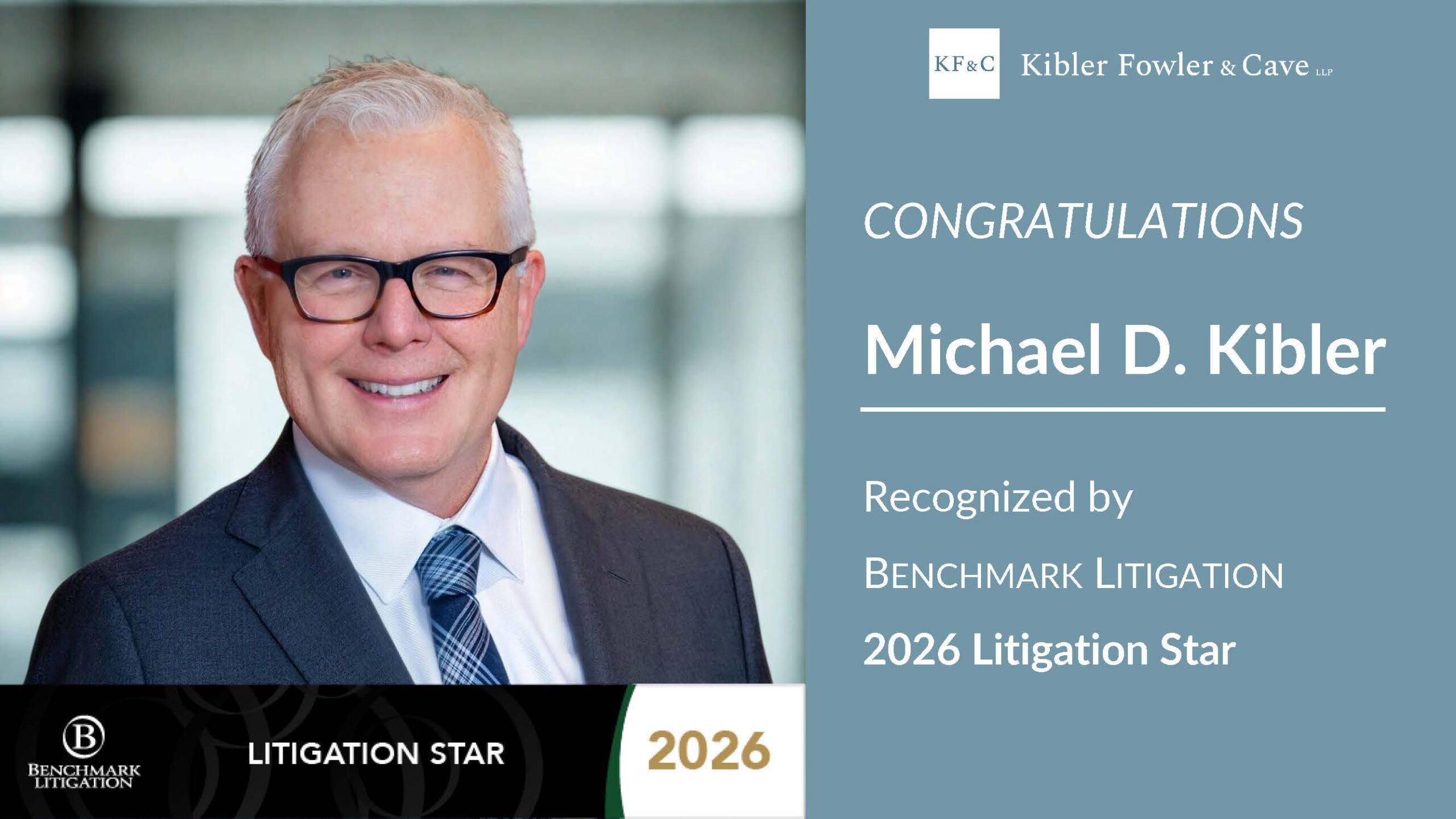 Los Angeles, CA, October 28, 2025 – Kibler Fowler & Cave LLP is proud to announce that Managing Partner Michael Kibler has been named a “Litigation Star” in the 2026 edition of Benchmark Litigation.